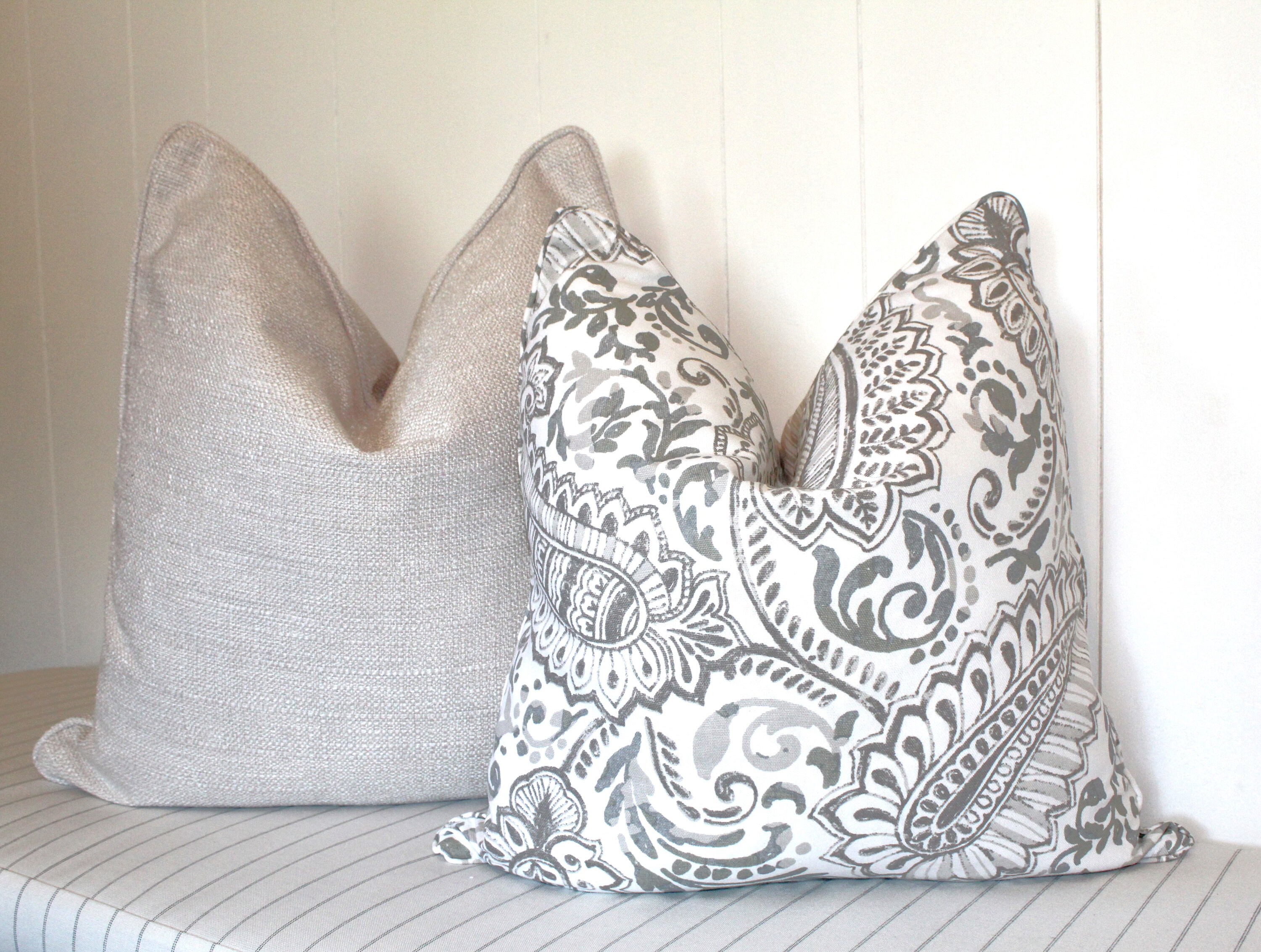 Reversible Beige Floral Cushion Covers Striped And Paisley Etsy Australia